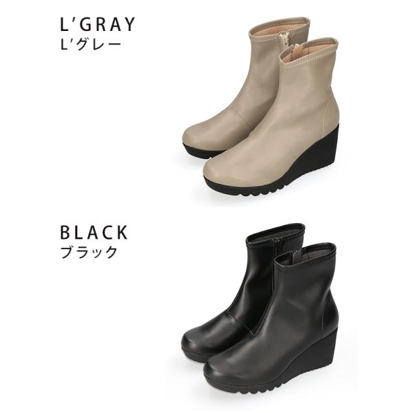 ファーストコンタクト ブーツ ショート レディース 歩きやすい 痛くない 厚底 ウェッジソール 軽量 サイドジップ 黒 おしゃれ かわいい 通勤 日本製 靴 69600