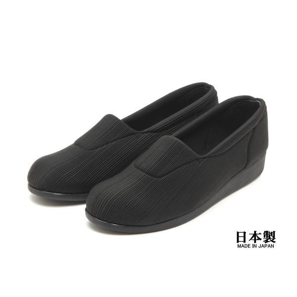 日本製 柔らか ストレッチ ラウンドトゥ ウェッジソールパンプス ブラック