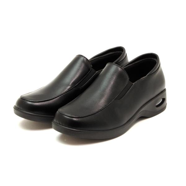 レディース スリッポンシューズ スクエアトゥ 軽量 エアーソール ブラック (アウトレット)