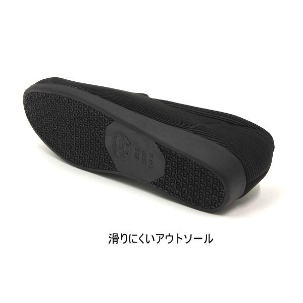 やわらかくのびるストレッチ素材 スリッポンタイプで足入れがしやすく脱ぎ履き楽ちん 4Eの幅広ゆったり設計で甲高の方や足幅の広い方も安心 かかとを踏んでもすぐに戻るので型くずれしにくい 滑りにくいソール ローヒール