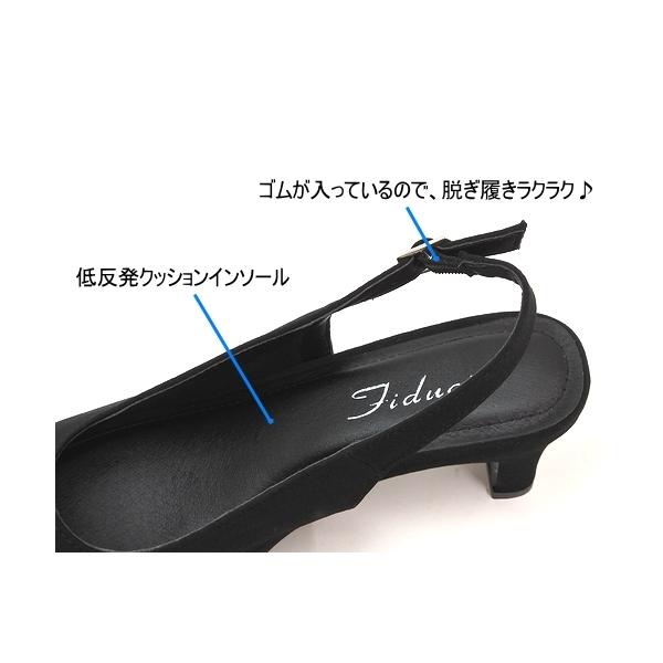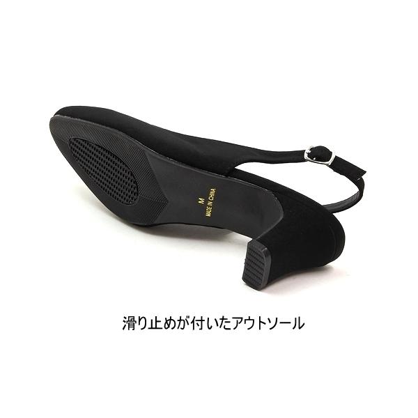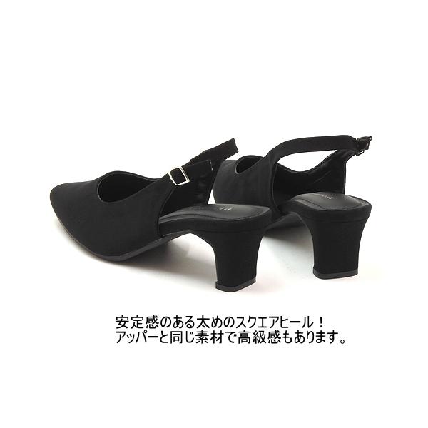 バックストラップパンプス フォーマル スクエアトゥ 低反発インソール サテン ブラック