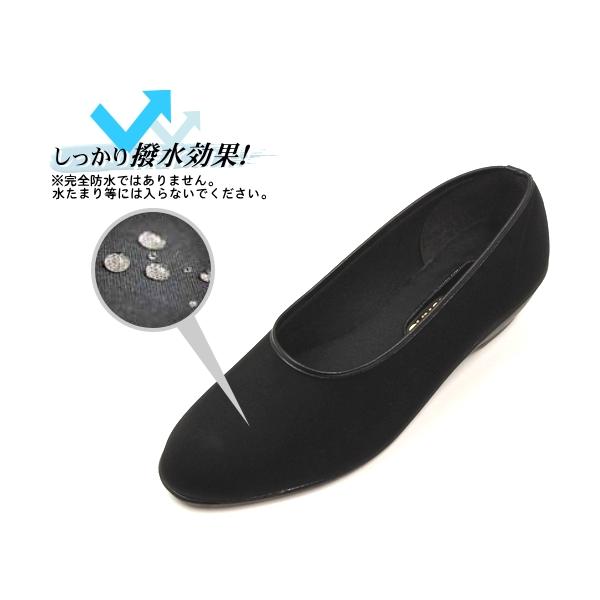 水を弾くはっ水素材で雨の日も安心 柔らかい素材でソフトな履き心地 クッションインソール 低めのウェッジソールで歩きやすい 履き口が広く脱ぎ履き楽々 軽い 国産