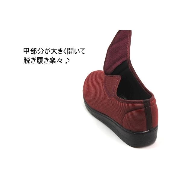 レディース 介護シューズ リハビリシューズ 面ファスナータイプ ワイン