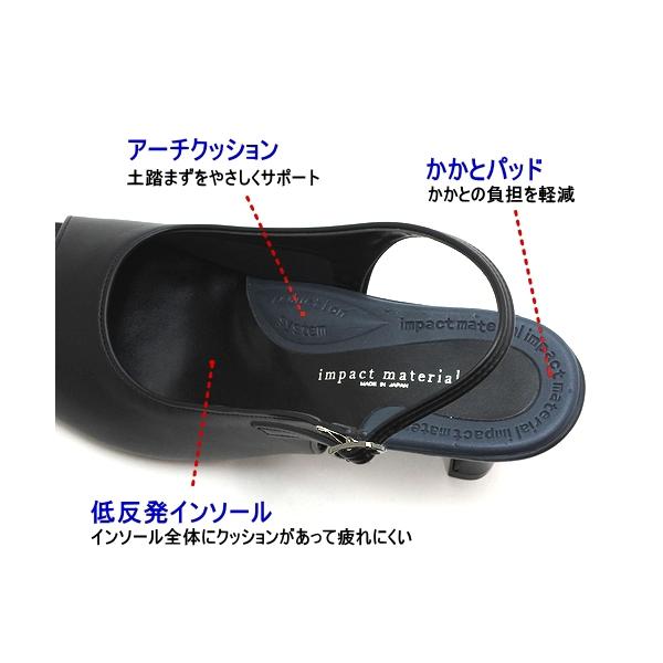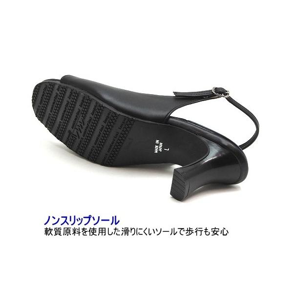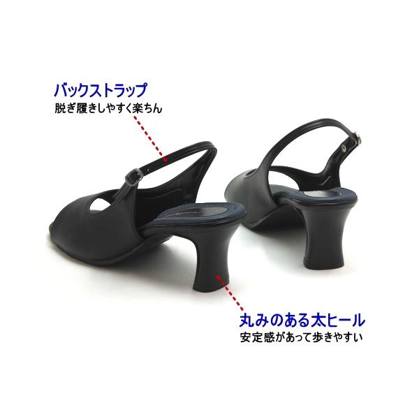 快適クッション 美脚 オープントゥ バックストラップパンプス ブラック