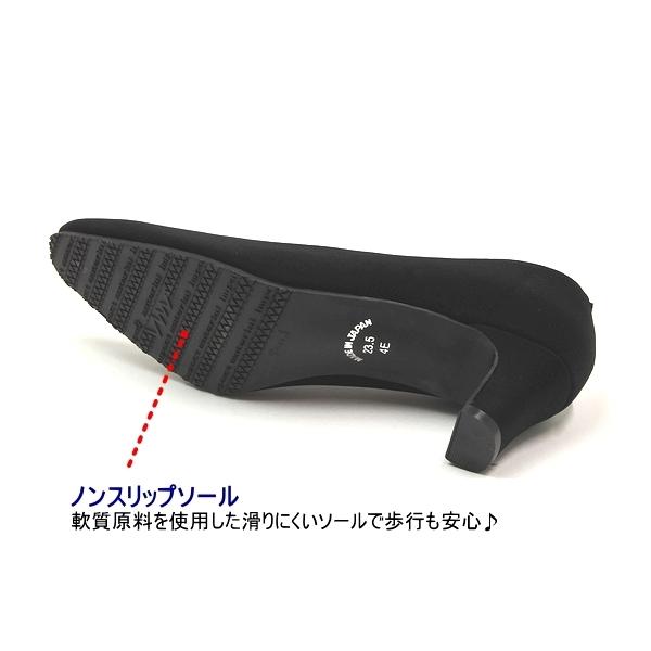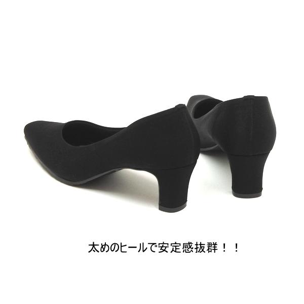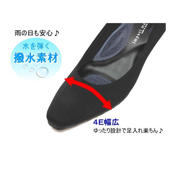 日本製 快適クッション 5.5cmヒール 4E 幅広 ポインテッド スクエアトゥパンプス 撥水サテン ブラック