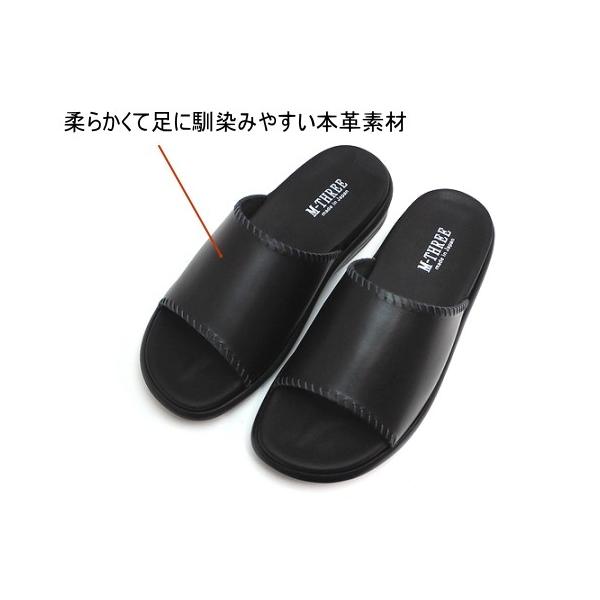 メンズ 本革 オープントゥ コンフォートサンダル 日本製 ブラック