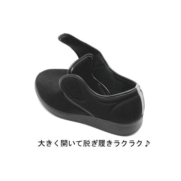 メンズ 4E 幅広 軽量 ラウンドトゥ 甲バンド 介護シューズ リハビリシューズ ブラック