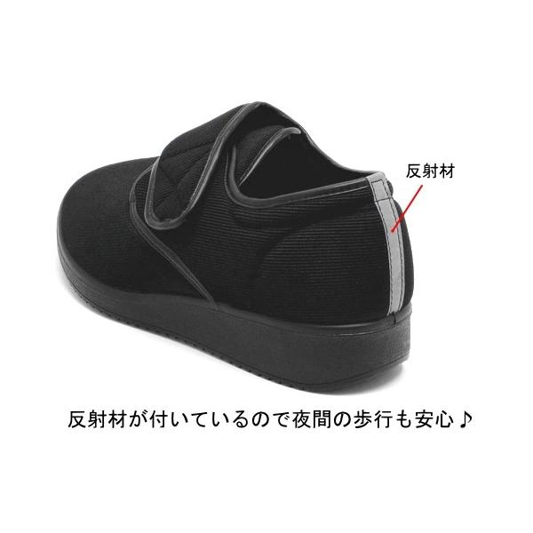 軽量/軽い/柔らかい/ゆったり/甲高/幅広/反射材付き/足あたりのよいソフトな素材/屈曲性のあるソールで足に馴染みやすい/マジック(面ファスナー)タイプで脱ぎ履きが簡単/滑りにくいアウトソール