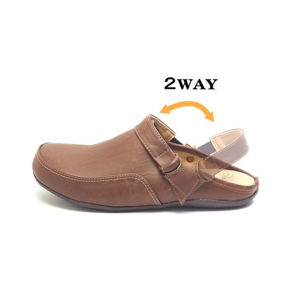レディース 2WAYベルト サボサンダル クロッグサンダル ブラウン