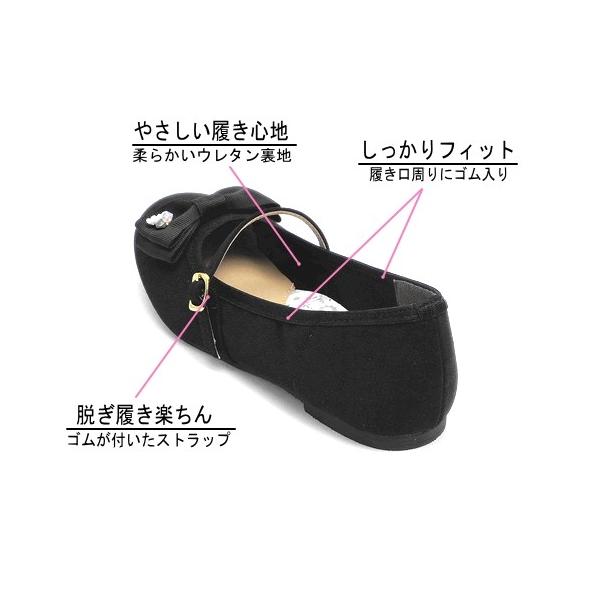 キッズ フォーマルシューズ ビジュー付リボン ストラップシューズ サテン ブラック (在庫処分)