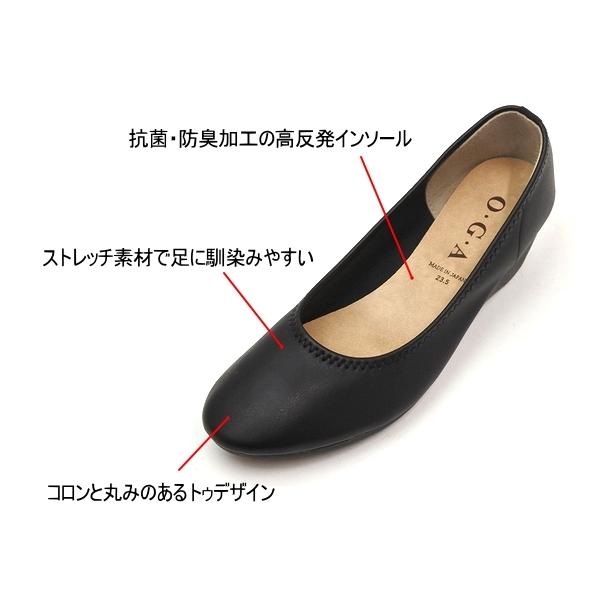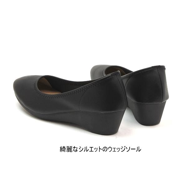 日本製 柔らか ストレッチ ラウンドトゥ ウェッジソールパンプス ブラック