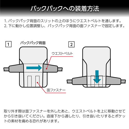 GW-PROシリーズのバックパックやスリングショルダーに装着して快適性を向上させるウエストベルト