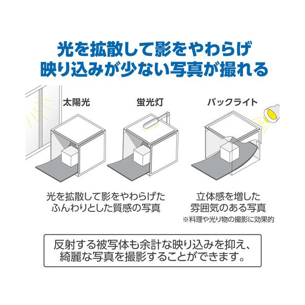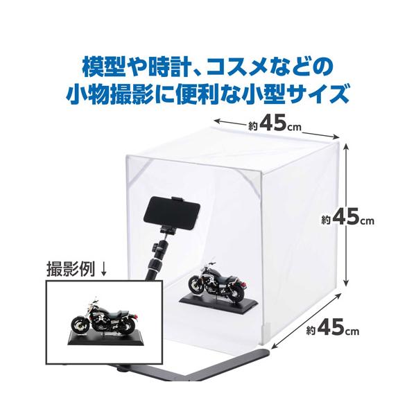 手軽にどこでもきれいな写真撮影ができる撮影ボックス。模型や時計、コスメなどの小物撮影に便利な45cmサイズ。