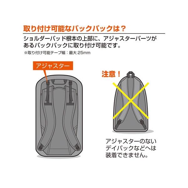 【実用新案登録済】バックパックに簡単装着、重いカメラも快適に!