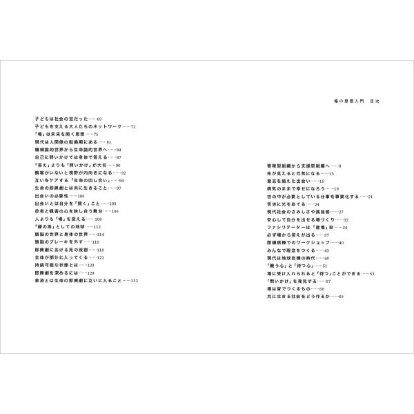 NPO法人「場の研究所」の清水博所長と、まちづくりや企業研修などで数多くの「場づくり」を手掛けてきた清水義晴氏による対談。競争社会から生命調和の時代へ、時代の転換期に日本のもつ「場」の文化が大きな役割を果たすであろうと予感した二人が、自らの体験をもとに「場」と「生命」の在り方を思想として語り合う。