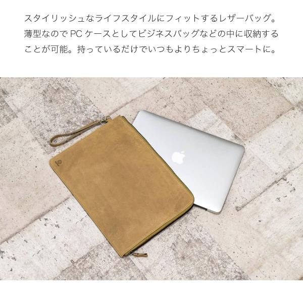 PCケース レザー 本革 13インチ クラッチバッグ A4ファイル 書類入れ Mac Book iPad 牛革 スリム 薄い ビジネス ブランド