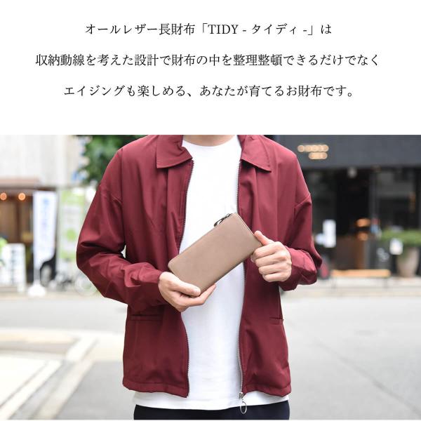 オールレザー長財布「TIDY」は収納動線を考えた設計で財布の中を整理整頓できるだけでなく、エイジングも楽しめる、あなたが育てる財布です。