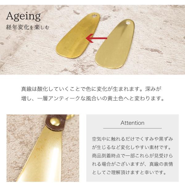 アンティークな風合いを醸し出す真鍮と、栃木レザーが織りなすお洒落な靴ベラは、毎日持ち歩いてるだけでもリッチな気分になれます。