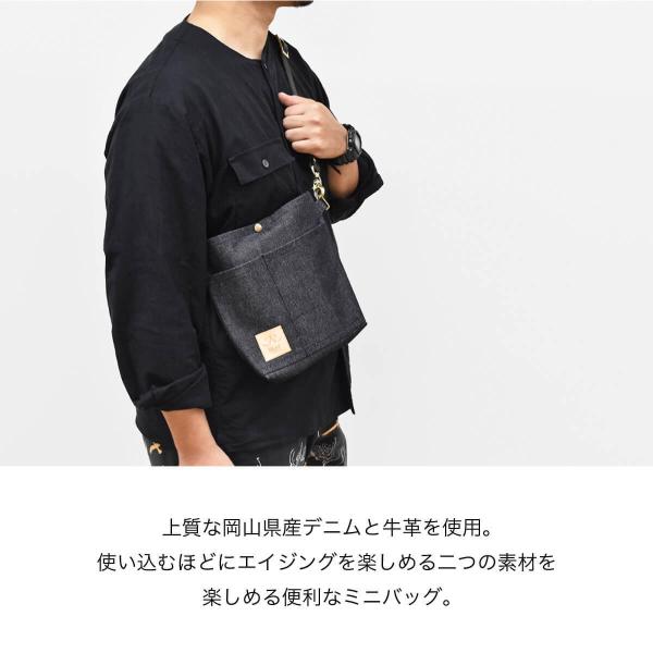 ショルダーバッグ 岡山デニム サコッシュ 栃木レザー 国産 日本製 メンズ レディース ボディバッグ デニムバッグ 児島デニム ブランド REAR