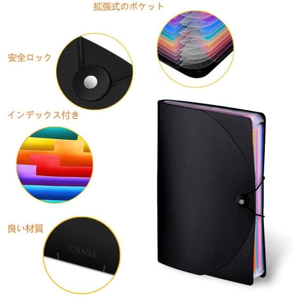 ファイルボックス A4 12分類 書類収納ケース 拡張フォルダ 大容量 蓋付き ラベル付き ブラック