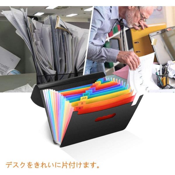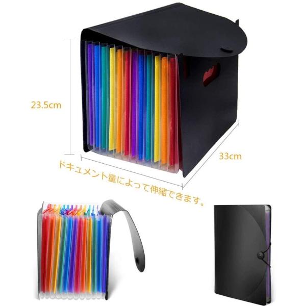 ■A4サイズ、拡張可能、マルチカラーラベル付きアコーディオン式フォルダ。書類の整理及び収納に便利です。