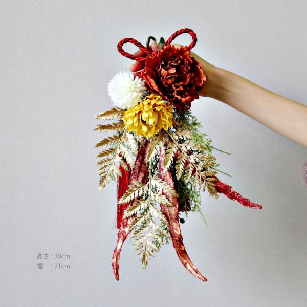 AO-001 ピオニーとゴールドファーンの壁飾り アーティフィシャルフラワー 造花 正月牡丹 お飾り プレゼント 誕生日 贈り物 おしゃれ 結婚 開店 ハナミーツ