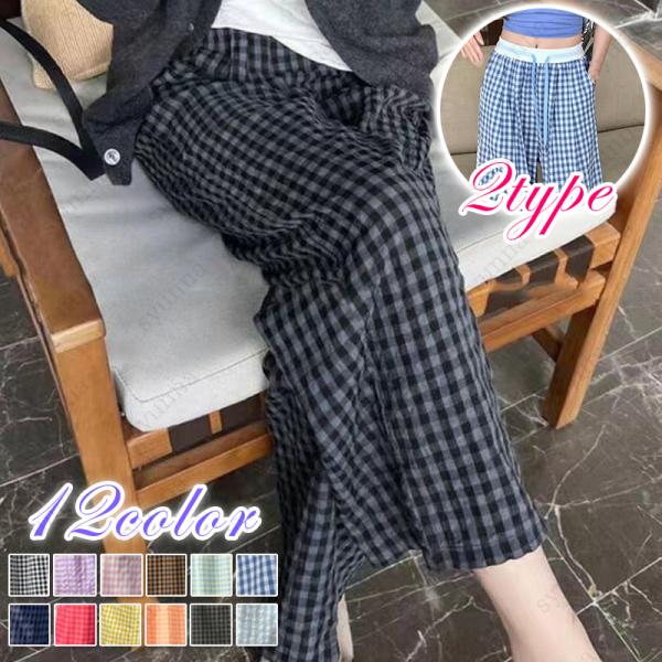 rg26# ルームパンツ レディース 国内発送 2type パジャマパンツ ロング ルームウェア 格子柄 ウェストゴム 寝巻き 部屋着 カジュアル ロングパンツ パジャマ
