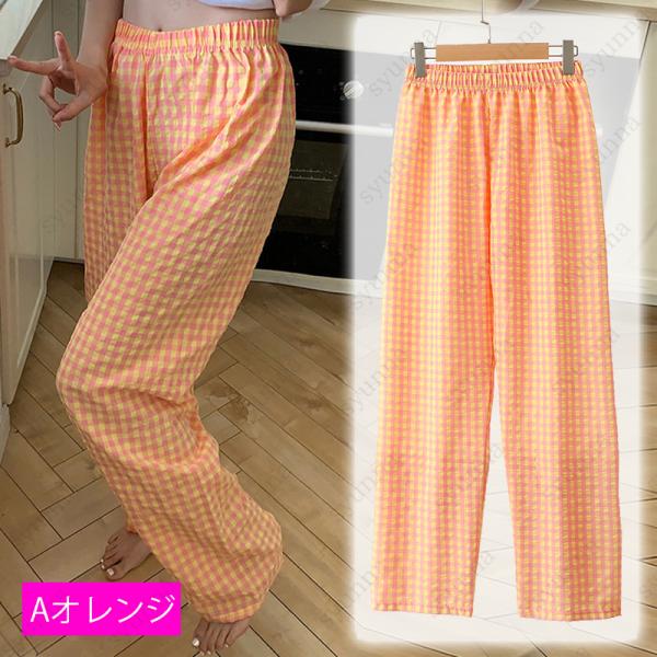 rg26# ルームパンツ レディース 国内発送 2type パジャマパンツ ロング ルームウェア 格子柄 ウェストゴム 寝巻き 部屋着 カジュアル ロングパンツ パジャマ