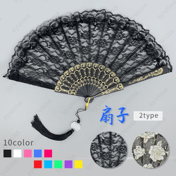 扇子 レディース (z142#) 日本国内当日発送 2type おしゃれ レトロ タッセル付き 綺麗 レース 女性用 和装小物 うちわ プレゼント 暑さ対策 コスプレ 中華風