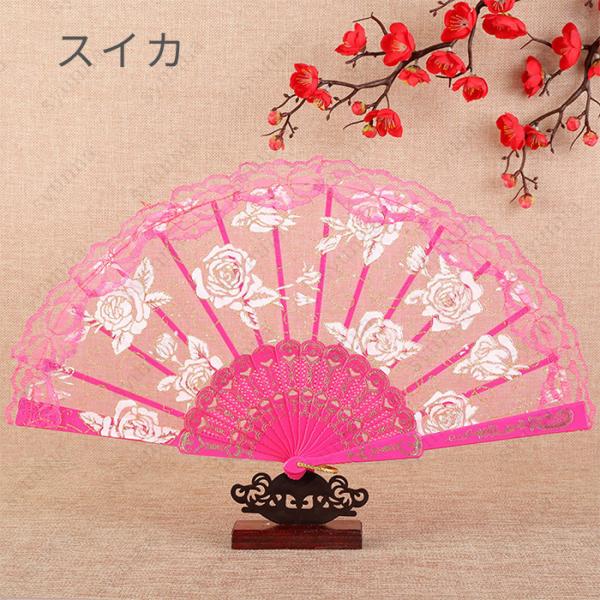 送料無料 扇子 折り畳み プラスチック 薔薇 レース