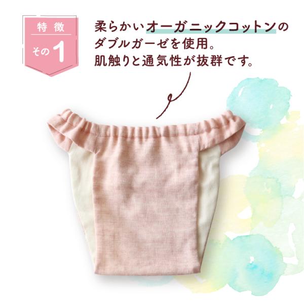柔らかく、肌にやさしいオーガニックコットンガーゼでできています。