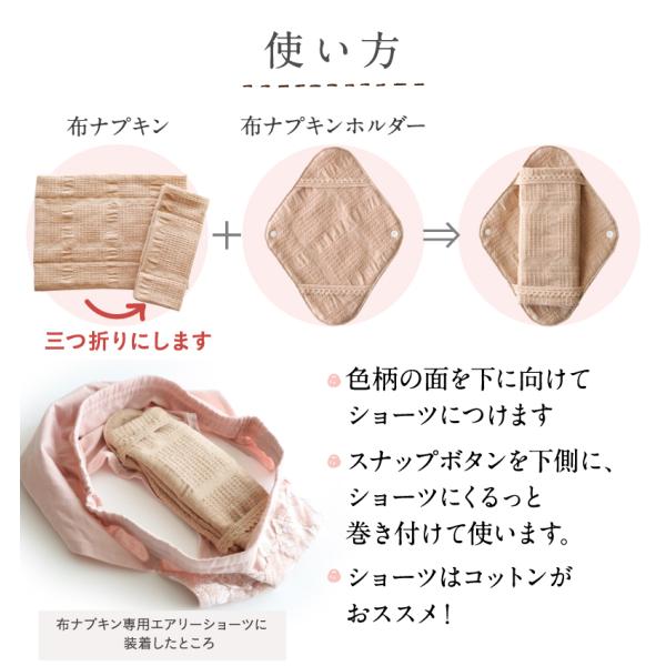 三つ折りにした布ナプキンを挟んで使います。