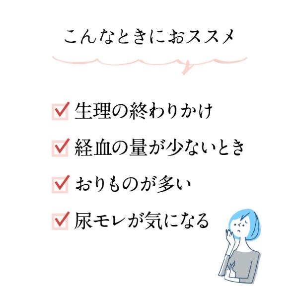 経血の量が少ないとき、おりものが多いとき、少量の尿もれにもおススメです。