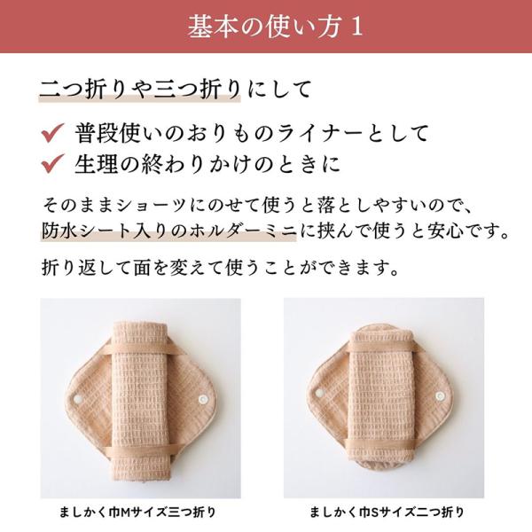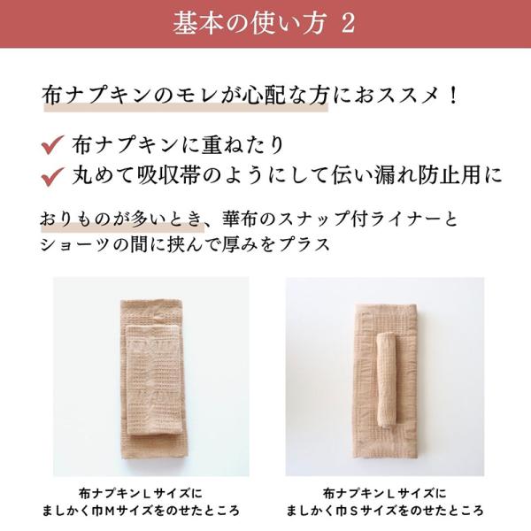 生理の時、モレが心配な方にもおススメ。 折って重ねたり、細長く丸めて吸水帯のようにしても使えます。