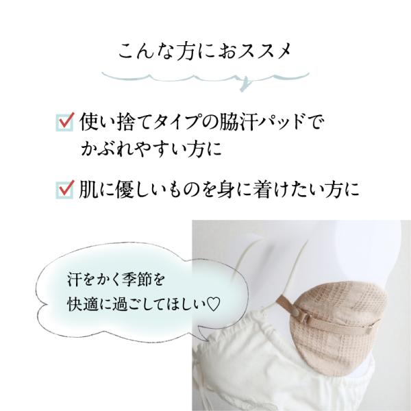 洗って繰り返し使える肌に優しいオーガニックコットンのわき汗パッドです。