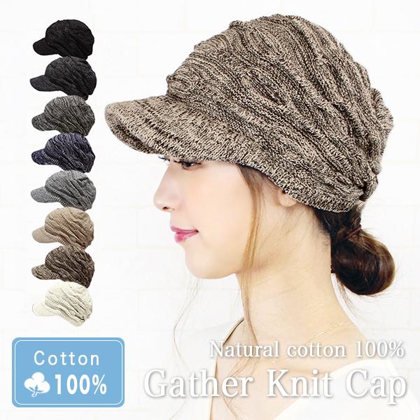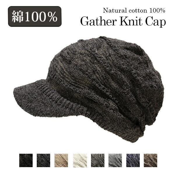 キャスケット 春夏 つば付き ニット帽 おしゃれ 通気性 蒸れない レディース メンズ/コットン100%ギャザーニットキャップ
