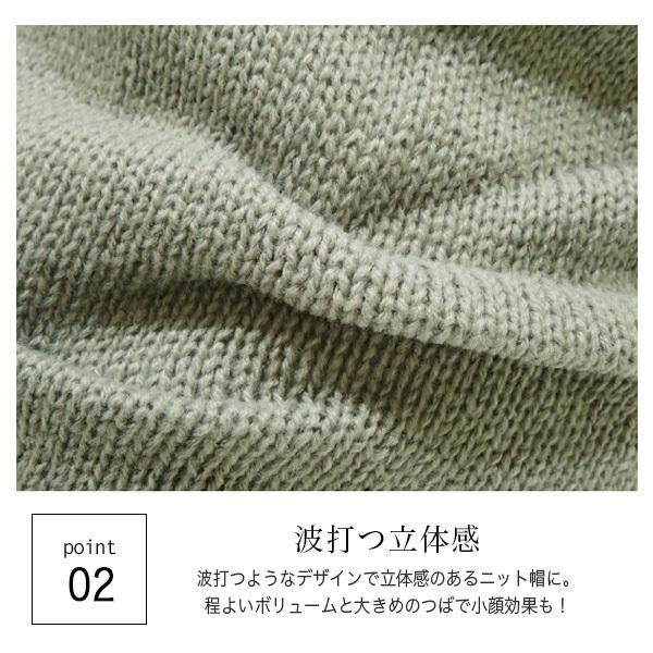 ニット帽 あったか つば付き くしゅくしゅ レディース メンズ 大きめ おしゃれ 秋 冬 寒い日 防寒 厚手 男性 女性 /Wave Acrylic Knit Cap(つばあり)
