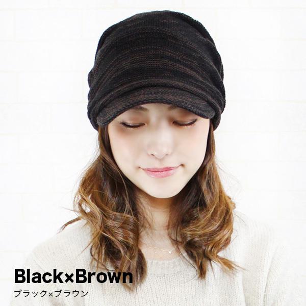 ニット帽 つば付き 春夏 レディース 医療用帽子 おしゃれ 可愛い キャスケット 大きめ 白髪 脱毛 綿 S M 帽子/コットン100%つば付透かし編みニット帽