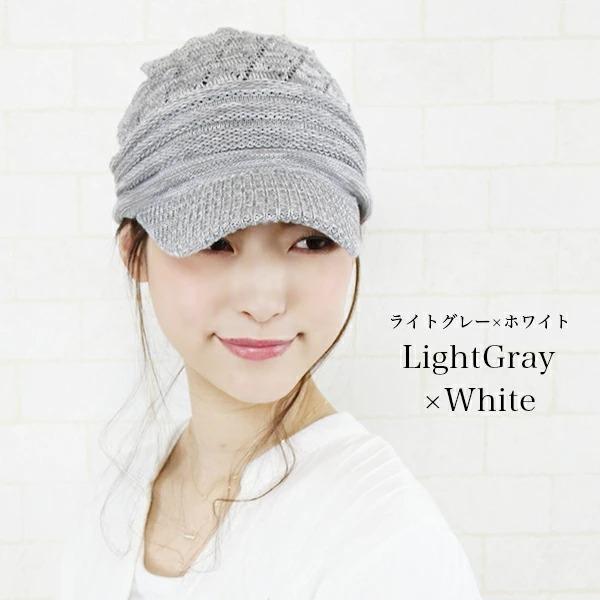 ニット帽 つば付き 春夏 レディース 医療用帽子 おしゃれ 可愛い キャスケット 大きめ 白髪 脱毛 綿 S M 帽子/コットン100%つば付透かし編みニット帽