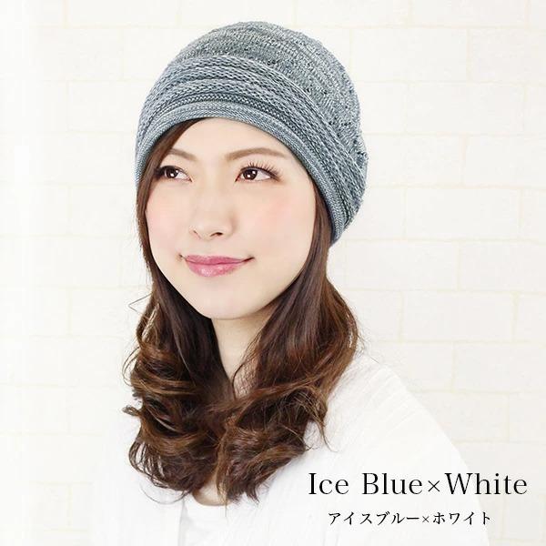 ニット帽 つば付き 春夏 レディース 医療用帽子 おしゃれ 可愛い キャスケット 大きめ 白髪 脱毛 綿 S M 帽子/コットン100%つば付透かし編みニット帽