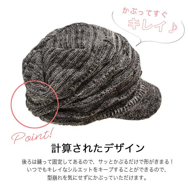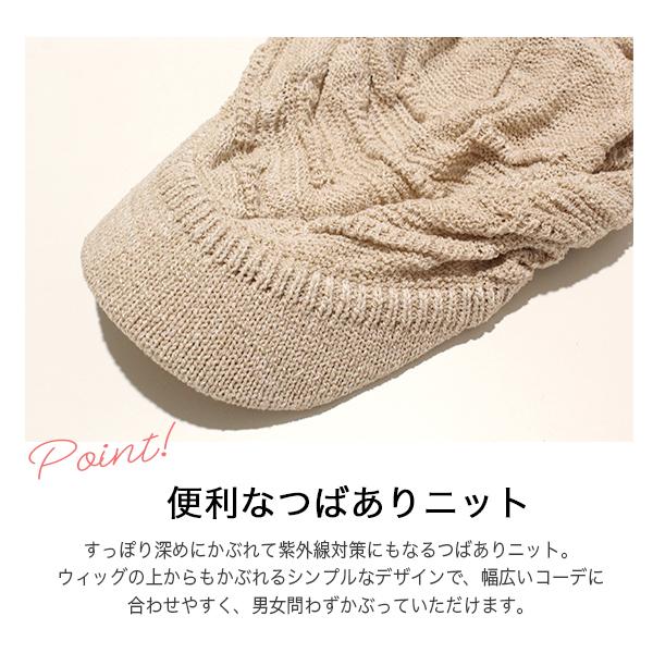 ニット帽 つば付き 春夏 レディース 医療用帽子 おしゃれ 可愛い キャスケット 大きめ 白髪 脱毛 綿 S M 帽子/コットン100%つば付透かし編みニット帽