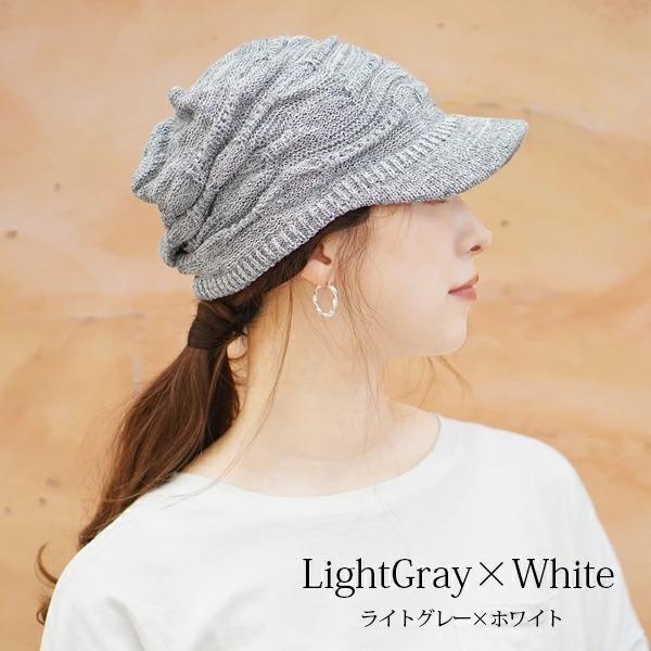 ニット帽 つば付き 春夏 レディース 医療用帽子 おしゃれ 可愛い キャスケット 大きめ 白髪 脱毛 綿 S M 帽子/コットン100%つば付透かし編みニット帽