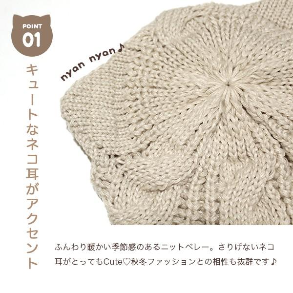 ベレー帽 秋冬 キッズ レディース 猫耳 猫 ねこ ネコ ミミ みみ 耳 可愛い ニットベレー 帽子 親子 ベージュ ブラウン グレー ブラック /キャットベレー帽