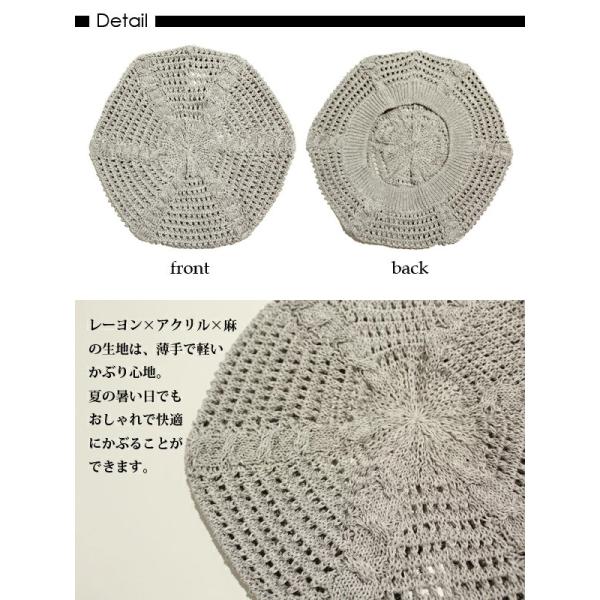 ベレー帽 レディース 春 夏 薄手 帽子 サマーニット おしゃれ かわいい 軽い 麻 通気性 カジュアル 女性 ミセス ローゲージ 秋 /Openwork Rayon Beret