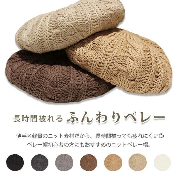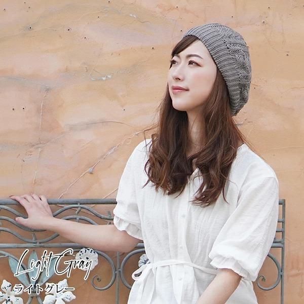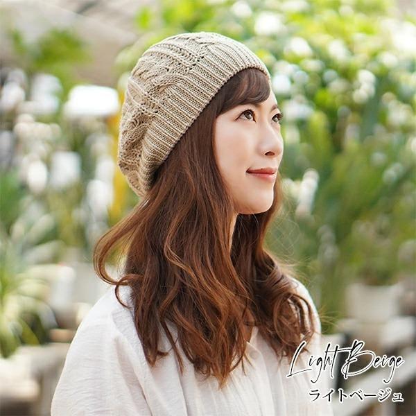 ベレー帽 レディース 綿100% コットン ニット ベレー 女性 シンプル 帽子 おしゃれ 医療用帽子 ゆったり 春 夏 秋 冬 ミセス /Cotton 100% Cable Knit Beret