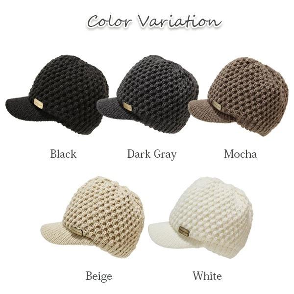 キャスケット レディース 深め つば付き ニット帽 毛糸 暖かい 帽子 プレート付き 秋冬 女性 無地 おしゃれ ニットキャップ/ Plate Knit Casquette