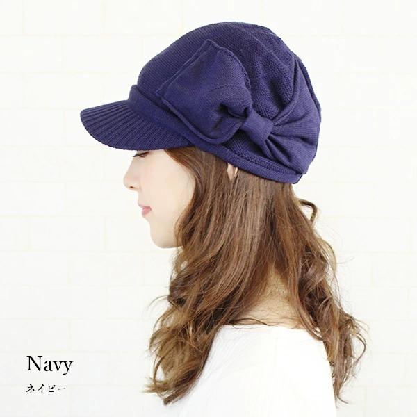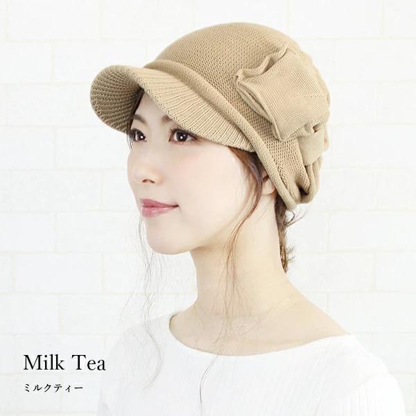 商品名【ナチュラルコットン100%つば付きリボンニット帽】