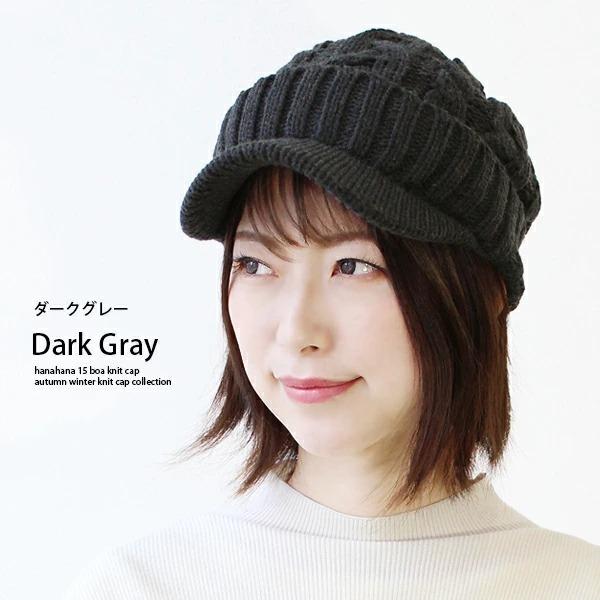 寒い冬や防寒対策に◎裏地ボアのつば付きニットキャップ