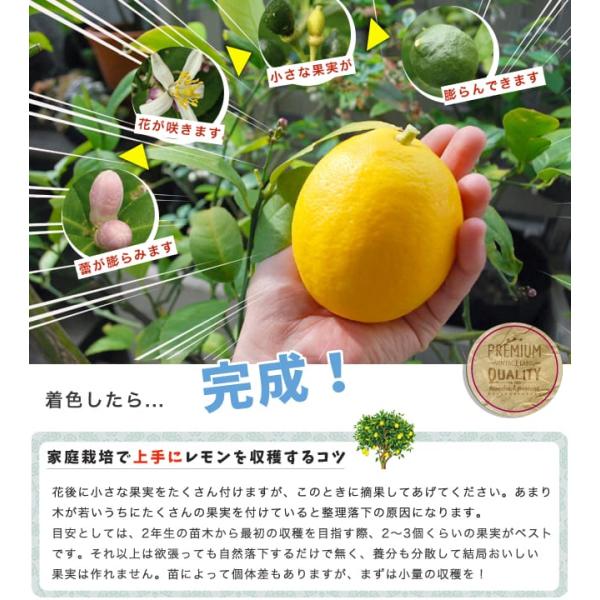 レモンの中で最も育てやすい品種です。レモンの中では最も寒さに強く、暖地と太平洋側の北風が当たらない日当たりの良い場所で露地栽培できます。四季咲き性は弱く、秋果が多いです。