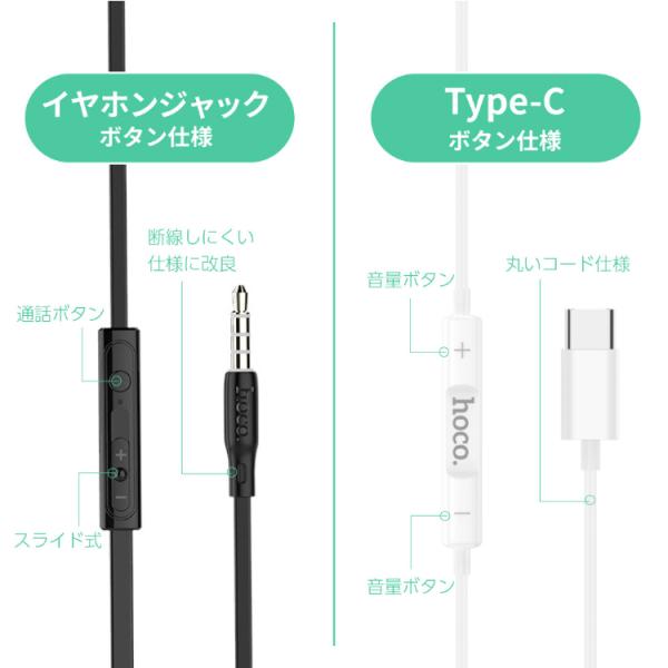 イヤホン 有線 イヤホンジャック Type-C タイプC iPhone マイク インナーイヤー イヤホンジャック オープン型 開放型 通話 スライド式 シンプル リモコン